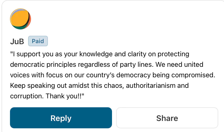 Special thanks to my paid subscribers. Please keep the feedback and notes coming.