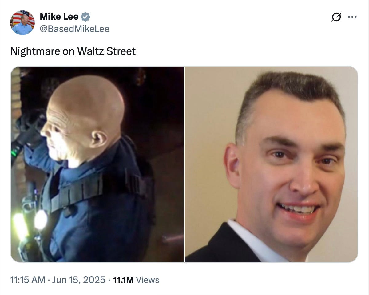 What’s worse? He probably didn’t even write his post. Like many in Trump’s orbit, Lee approves, staffers execute. Somewhere, an aide, the next generation, thought this was clever. That’s how normalization works: not just silence, but smirking succession. And perhaps what’s most grotesque is the spin. Instead of acknowledging the horror, Lee and others on the right like U.S. Senator Bernie Moreno labeled the suspect a “Marxist.” Others floated conspiracy theories to blame the left. When the violence hits too close to their rhetoric, they deflect and re-radicalize. For the record: the shooter was a white evangelical Christian with far-right views, not a Marxist.