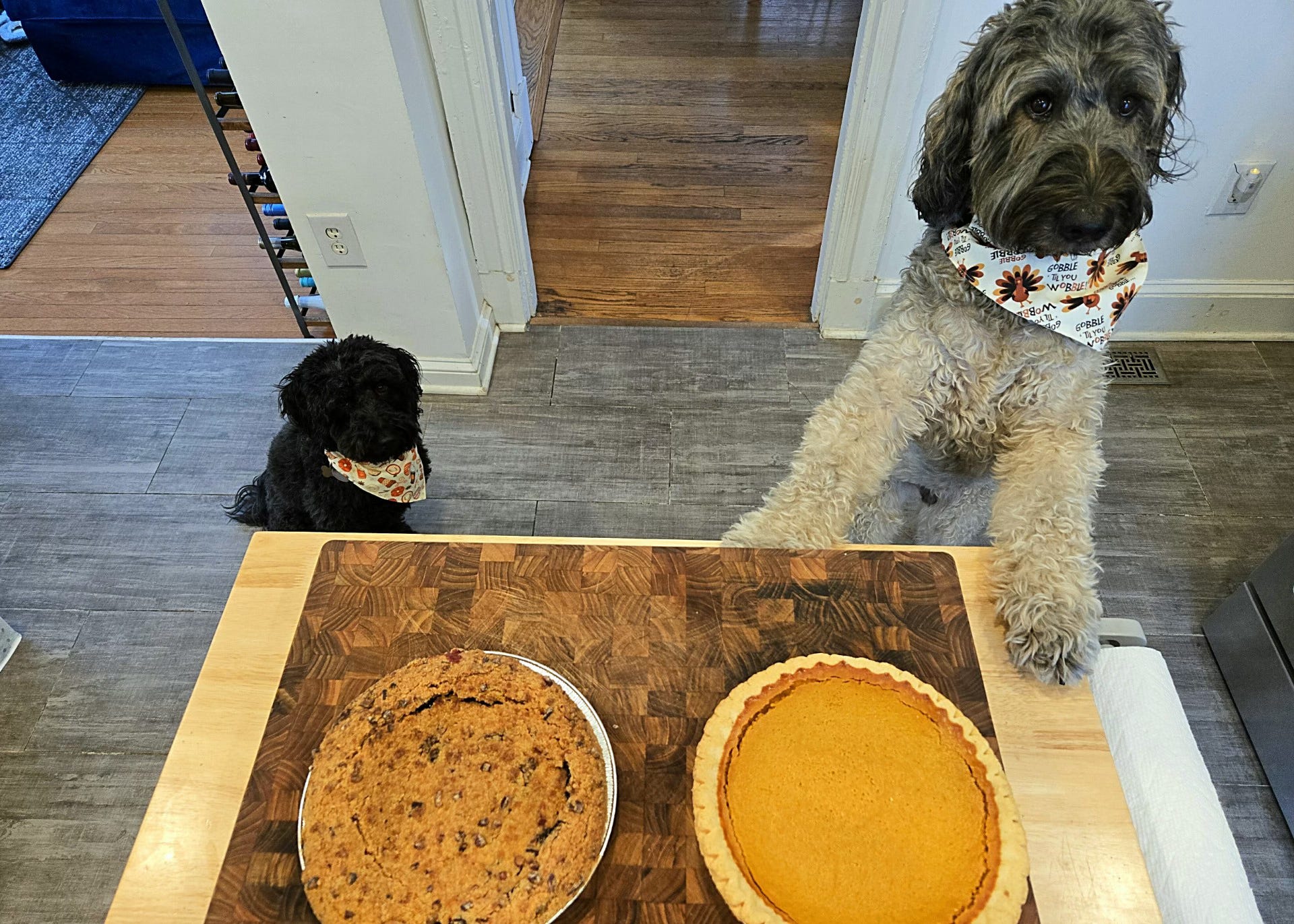 Happy Thanksgiving, from my kitchen (and my dogs stealing pie crust) to yours!