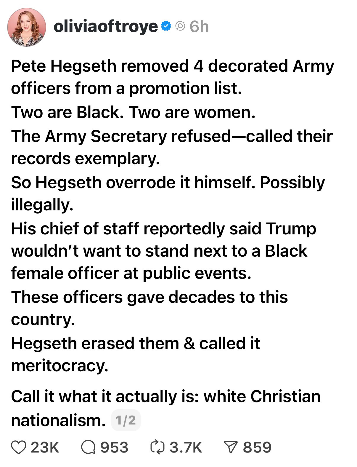 These officers being disparaged are combat-tested leaders. They earned their place. And now they’ve essentially been erased. Hegseth framed it as “meritocracy.” Let’s call it what it really is.